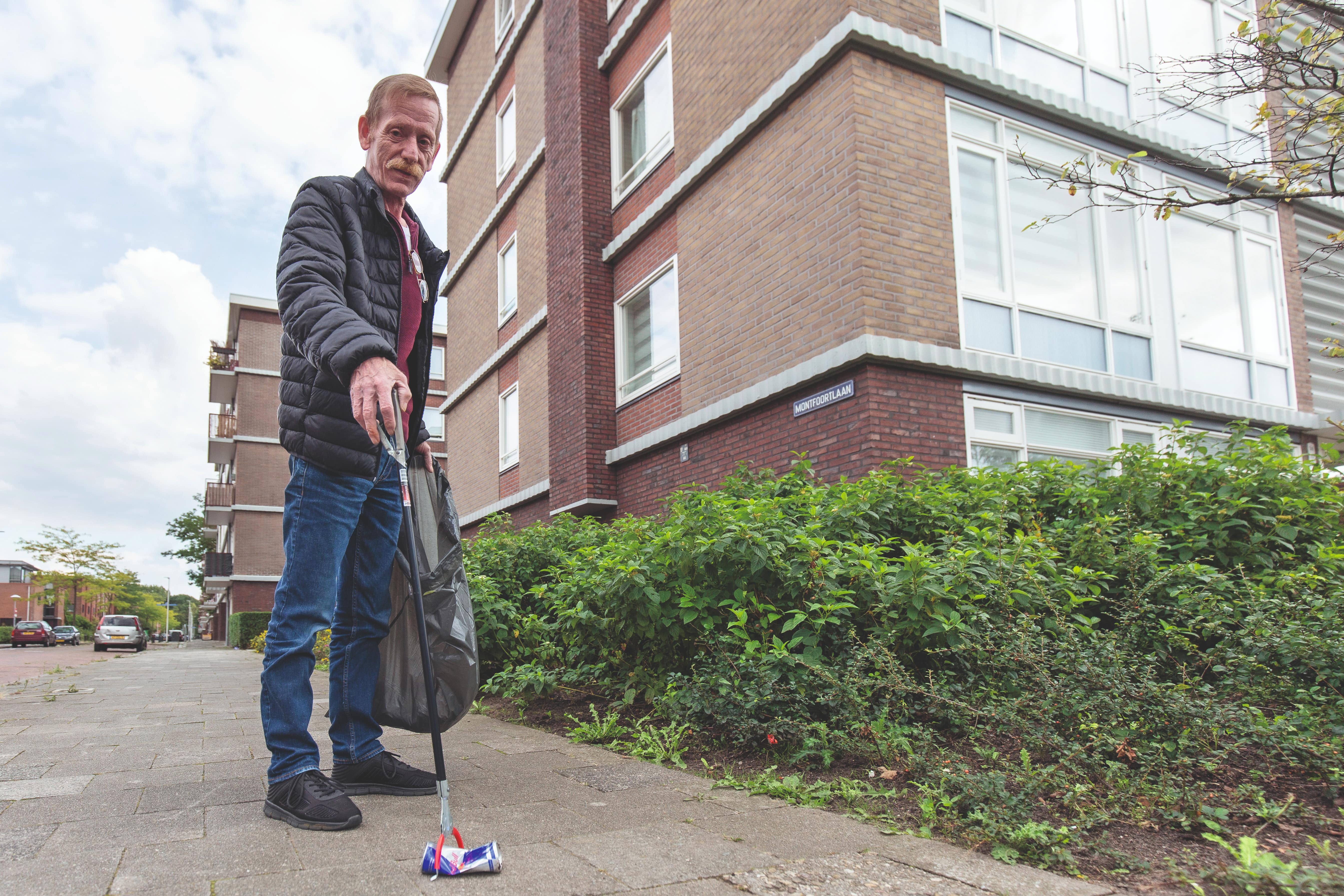 Het is leuk werk, vindt Peter. "Ik doe het nu ruim twee jaar, sinds Abdellah hier buurtbeheerder is. Die zit overal goed bovenop en wil de wijk schoonhouden. Hoograven heeft veel overlast van ratten, dus dan is het extra belangrijk om afval snel op te ruimen."