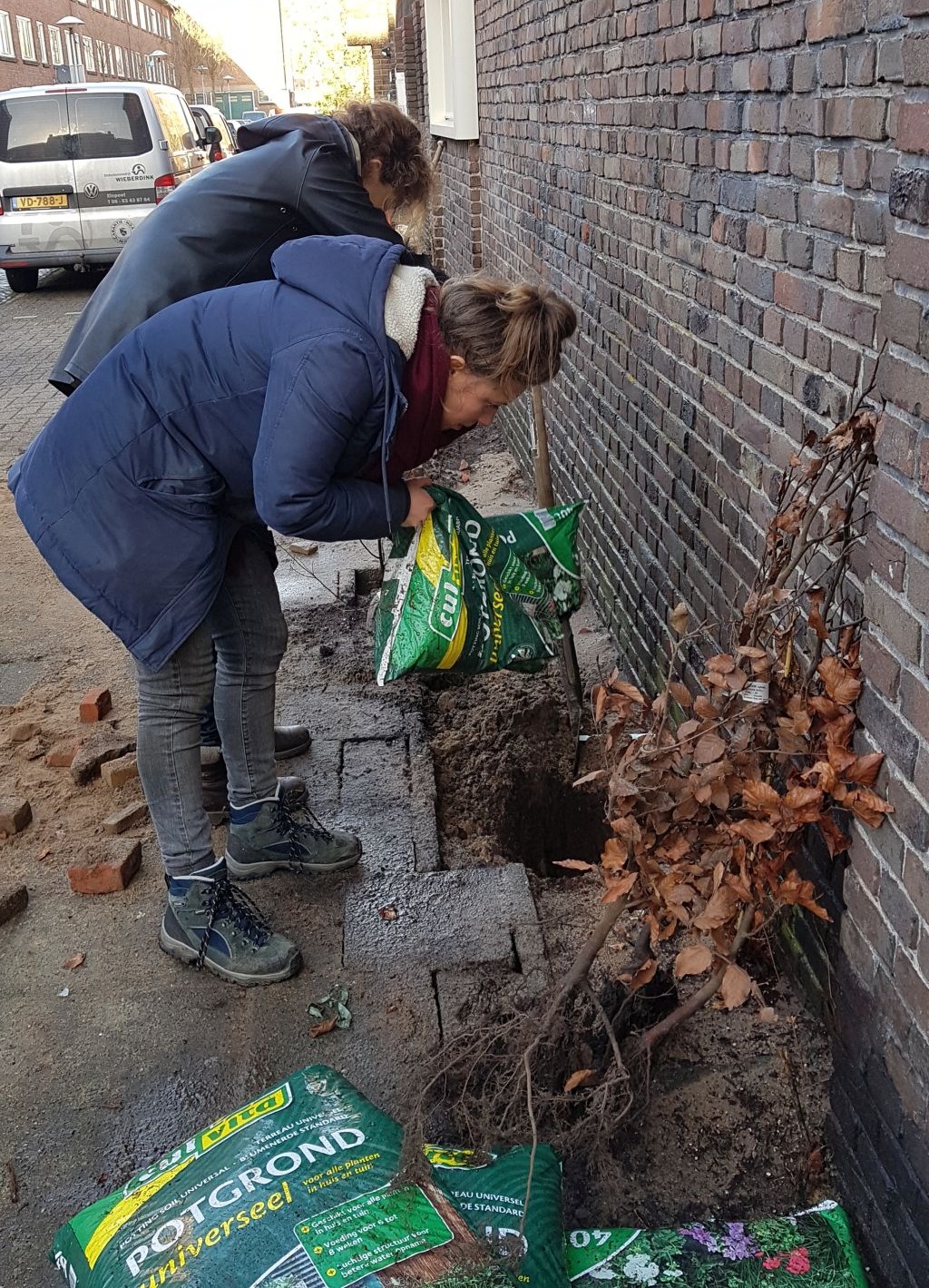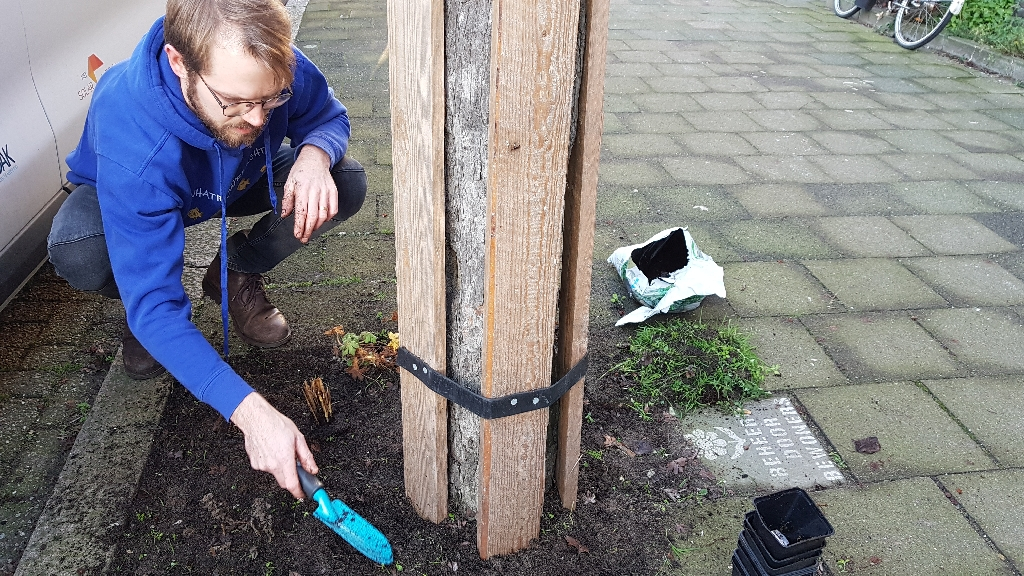 Mathilde: "Die vrijwilligers hebben we als Groengroep geworven. Helaas zijn er planten gesneuveld in de tien boomspiegels en geveltuinen in de Van Heutszstraat toen het groot onderhoud van ons complex begin dit jaar startte. Gelukkig hebben we hierover afspraken kunnen maken met Bo-Ex. Voordat het werk ergens start, komt er nu een afrastering om de boomspiegel. Het gaat nu veel beter. Bo-Ex heeft ons geholpen zodat we nieuwe sterke vaste planten konden kopen. De bewoners van de Van Heutszstraat kunnen die bij ons afhalen en we gaan ze samen planten."