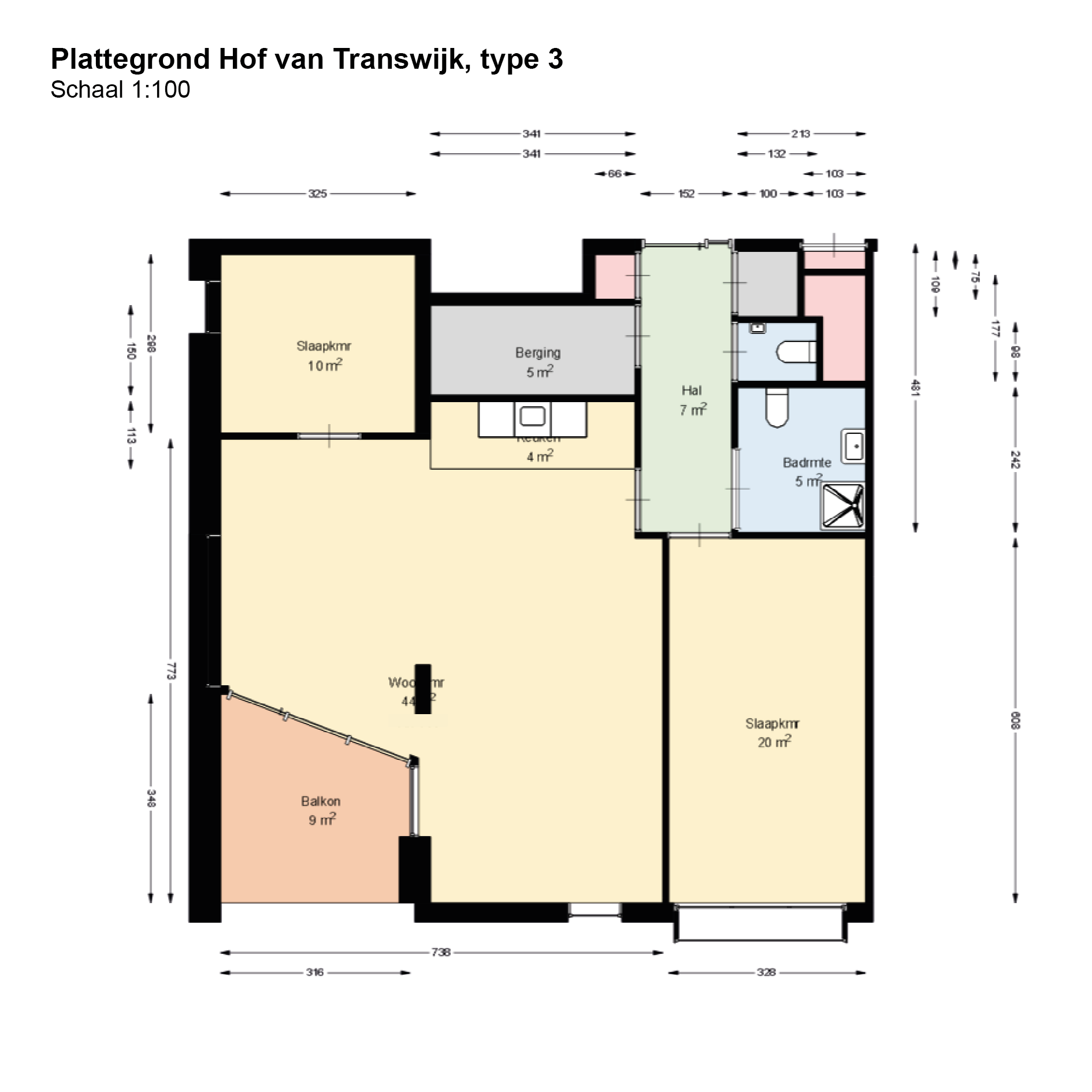 Dit appartement heeft drie kamers en heeft een totale oppervlakte van 100 m2.