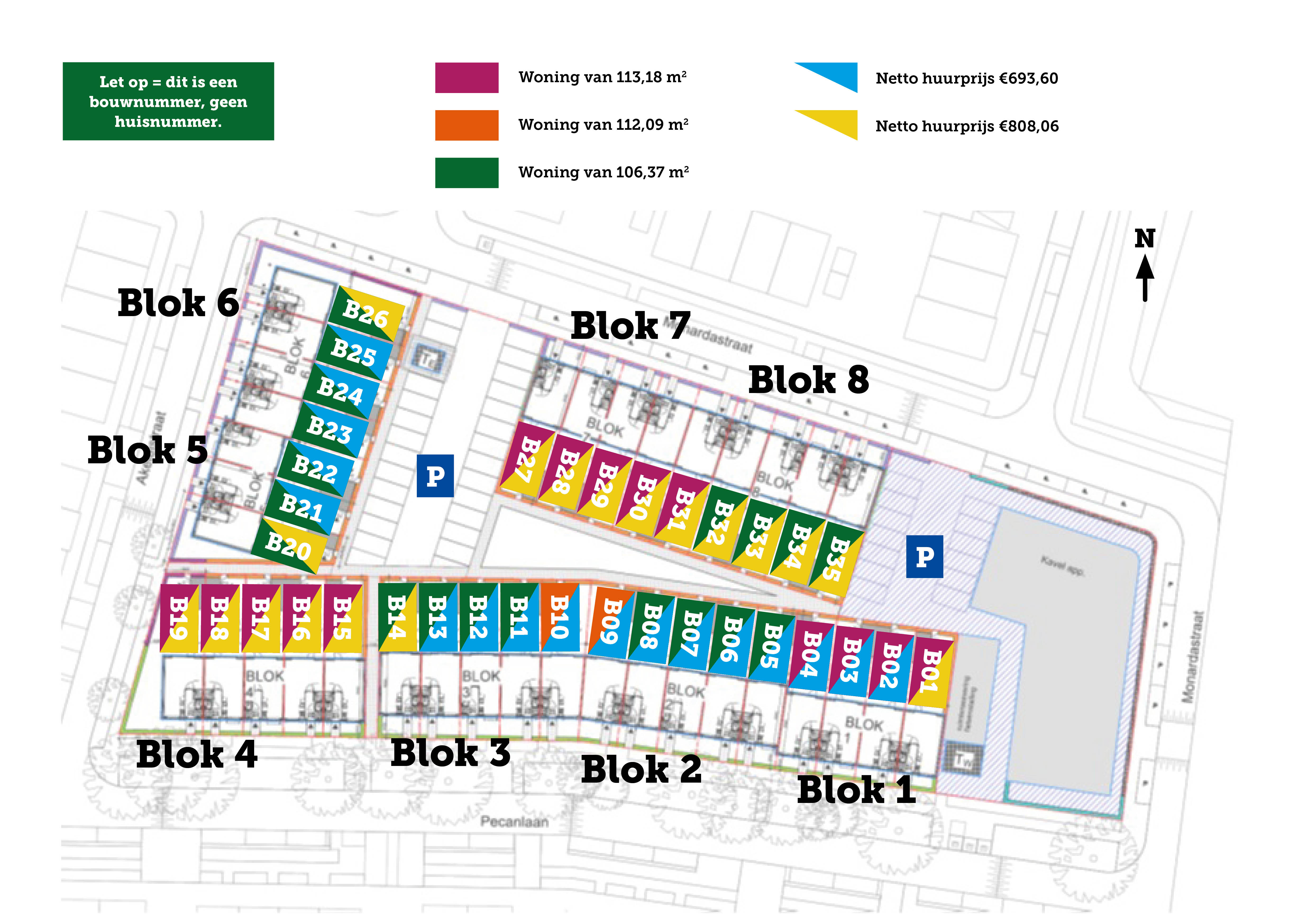 De 35 eengezinswoningen zijn gelegen aan de Monardastraat, Akeleistraat en Pecanlaan. De woningen hebben allemaal drie slaapkamers op de eerste verdieping, een zolder en een gemiddelde oppervlakte van circa 105m2. Alle woningen hebben dezelfde indeling en energieconcept en een achtertuin met aparte fietsenberging. Het zijn woningen die geschikt zijn voor gezinnen.